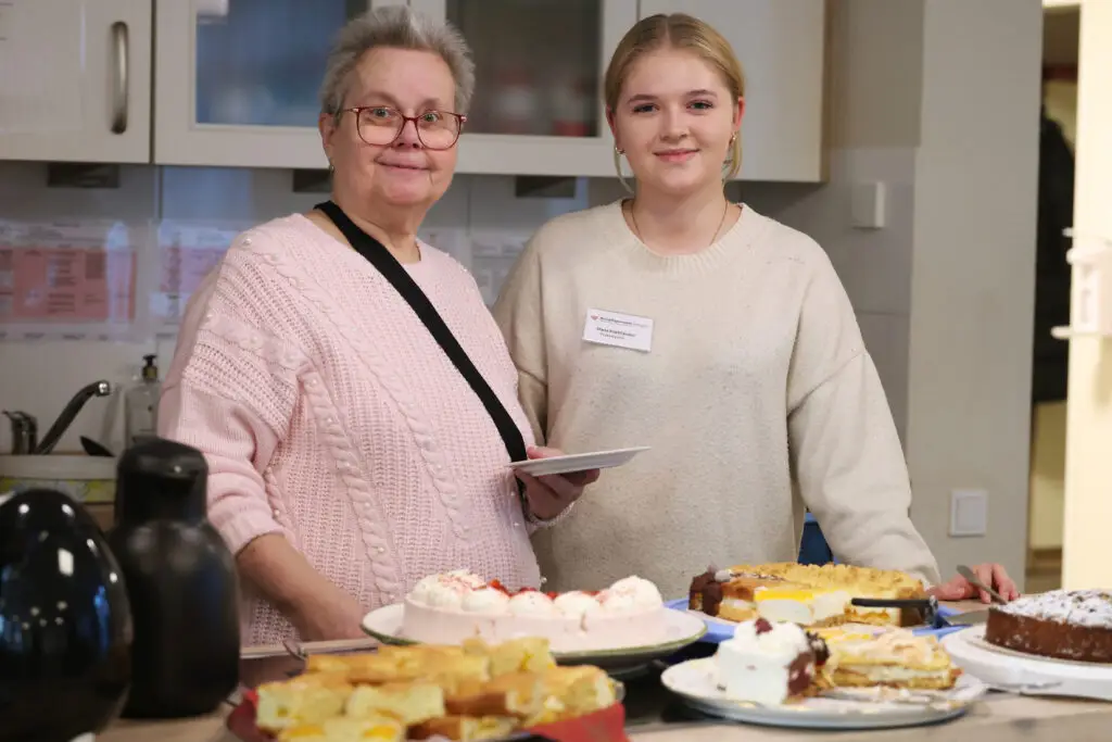 Über solch ein buntes Miteinander freuten sich auch die Leiterin der Tagespflege am Wasserturm, Andrea Lüscher, sowie Andrea Krug, Leiterin vom „Servicewohnen“, die beim Kuchenbüffet unterstützten. Andrea Lüscher: „Schön, wenn hier mal alle zusammen sind und keine Hemmschwelle existiert, in unsere Räume der Tagespflege zu kommen und sich mit den Pflegebedürftigen zu unterhalten.“