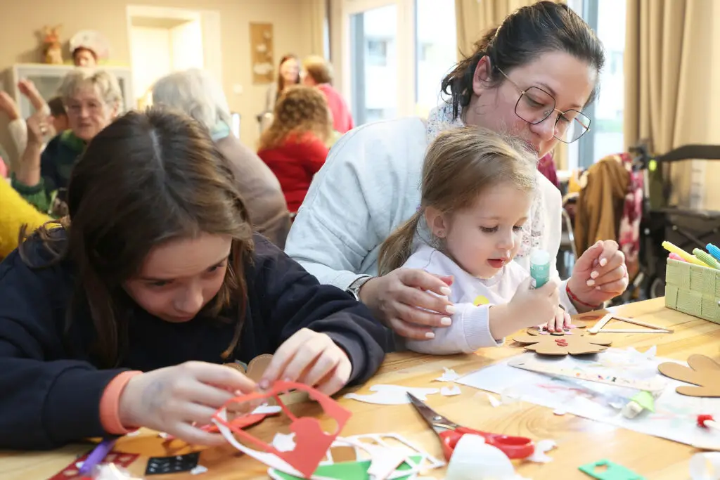 Töttern, Kaffee trinken, Kuchen essen und gemeinsam basteln – das ist seit einigen Jahren eine schöne Tradition in der Siedlung Wasserturm. In diesem Jahr kamen Ende November besonders viele große und kleine Bewohner und Bewohnerinnen aus der Siedlung mit den Gästen der Tagespflege zusammen. Gemeinsamer Treffpunkt war der Nachbarschaftstreff an der Burgunderstraße, der unmittelbar an die Räume der Tagespflege Wasserturm grenzt.