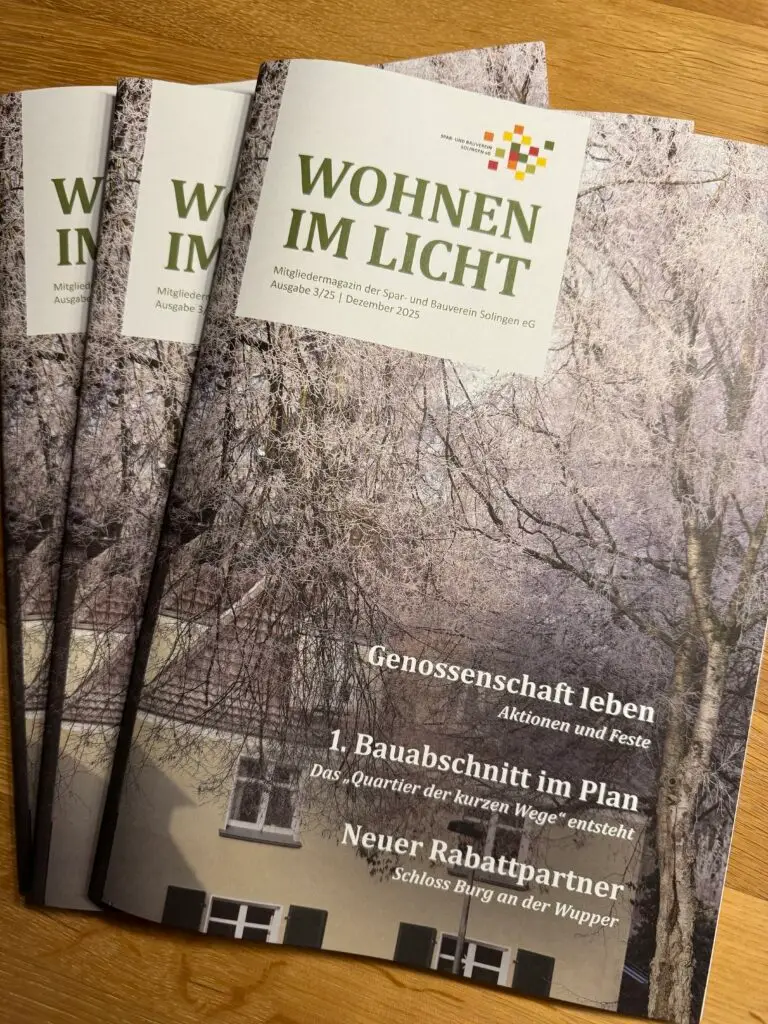Viele haben schon darauf gewartet, nun ist die aktuelle Ausgabe unseres Mitgliedermagazins erschienen – mit einem Kalender für 2026 sowie einer Übersicht über alle Aktivitäten in unseren Bewohnertreffs. Als E-Paper finden Sie das Magazin auch hier auf der Website unter Downloads https://sbv-solingen.de/aktuelles/wohnen-im-licht sowie im SBV-Portal.