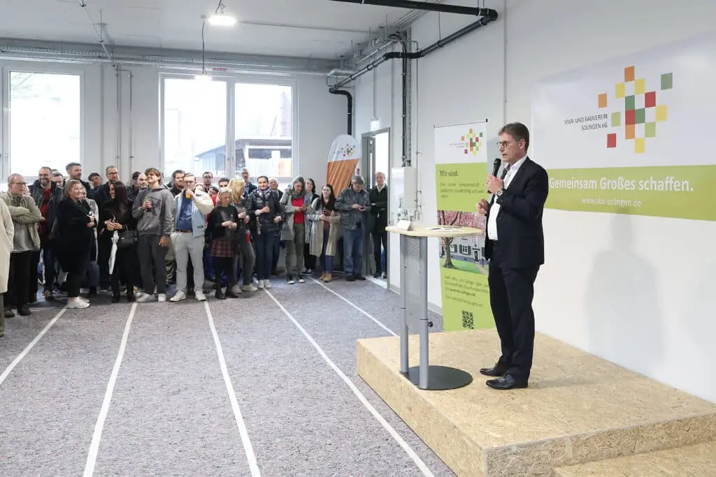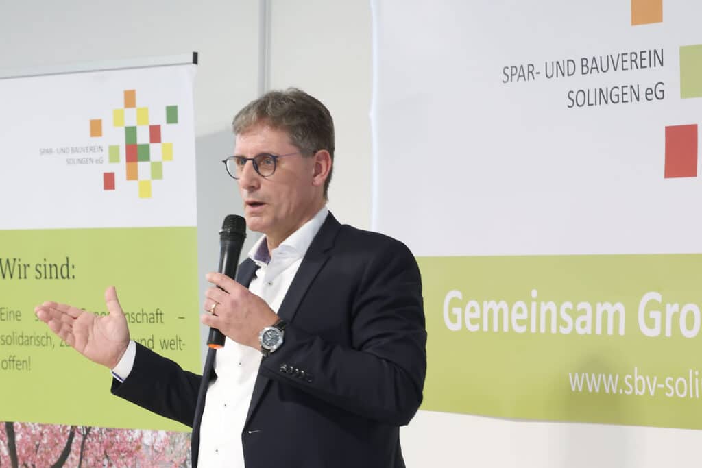 Wichtig sei dem gesamten Vorstand, so Uwe Asbach, dass die hier erarbeiteten Vorschläge und Prozesse auch Anregungen für andere Siedlungen seien. Dafür brauche es auch dort Freiwillige, die sich vor Ort für ihre Belange einsetzen. Bewusst forderte er die anwesenden Vertreter anderer Solinger Wohnungsgenossenschaften auf: „Kopieren ist ausdrücklich erwünscht!“ Und die ehrenamtlich Engagierten des SBV beglückwünschte er als „Botschafter und Botschafterinnen“, die etwas Gutes in Gang gebracht hätten, von dem wir als Gemeinschaft profitierten.